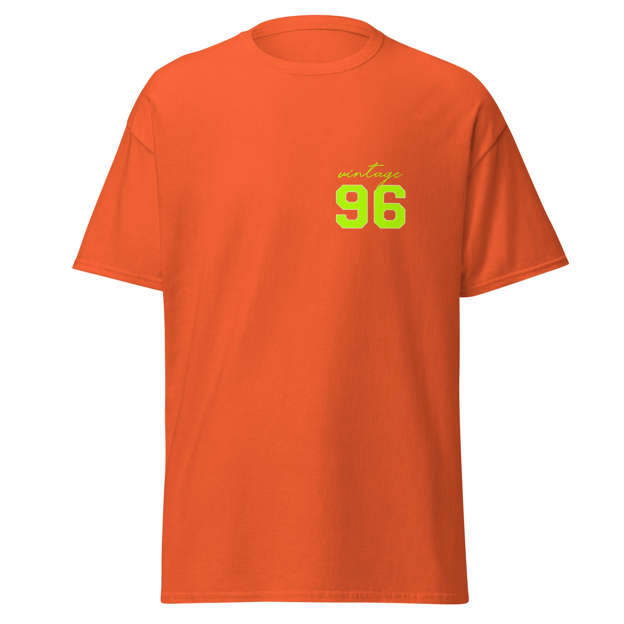 Le t-shirt custom Vintage 1996 ne manque pas d’originalité. Soyez unique avec une touche fluo dans une tenue décontractée .